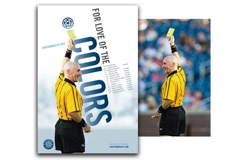 Chattanooga Football Club has designed several exciting pieces for the 2012 season including billboards, posters and more. The design work was crafted by Widgets and Stone, an excellent Chattanooga based creative firm. I only supplied the photography for this project.